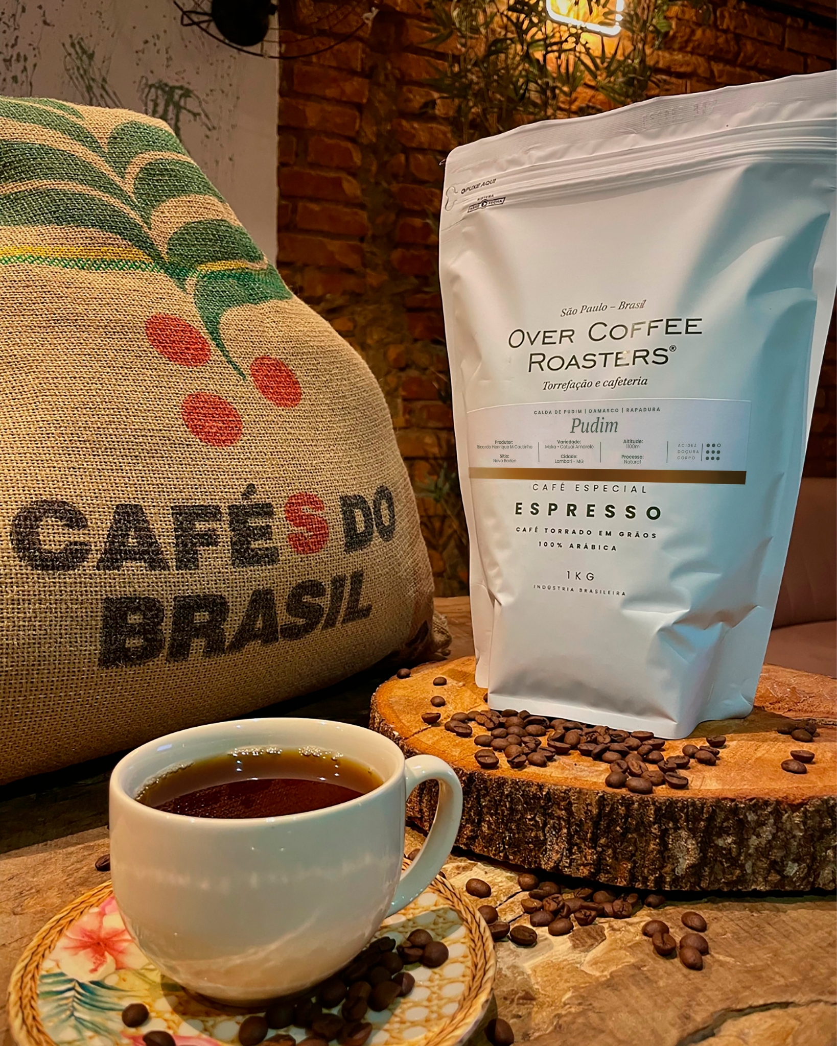 Nosso café Pudim é produzido pelo Ricardo Henrique Miranda Coutinho, no Sítio Nova Baden, localizado na Cidade de Lambari – MG em parceria com o Centro de Pós Colheita ABOVE, onde os cafés passam pelos métodos de processamento, secagem, beneficiamento e armazenamento. É um café da espécie arábica, Peneira Moka, Variedade Catuaí Amarelo, cultivado a uma altitude de 1100m e processo Natural. Tem aroma e sabor extremamente doces, acidez cítrica com sensação aveludada e doce, corpo intenso e finalização prolongada, com notas de calda de pudim, damasco e rapadura. Um café fácil de beber e que agrada de cara.